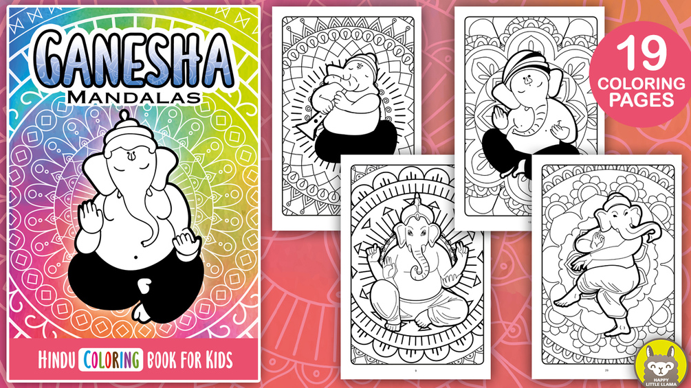 ✅ Unique Ganesha poses and activities, each with a mandala background to inspire creativity