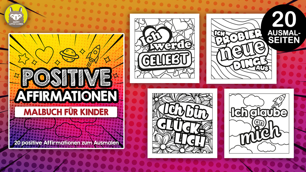 Positive Affirmationen Malbuch für Kinder - PDF zum Ausdrucken mit stärkenden Affirmationen für Kinder