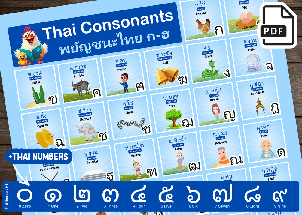 Are you looking for a fun and easy way for toddlers to learn the Thai alphabet? 🔠💡 This adorable Thai Alphabet Poster is perfect for bilingual families and helps kids learn all 44 Thai consonants in a simple and engaging way. Whether you’re a parent, teacher, or caregiver – this poster makes learning Thai both accessible and fun!